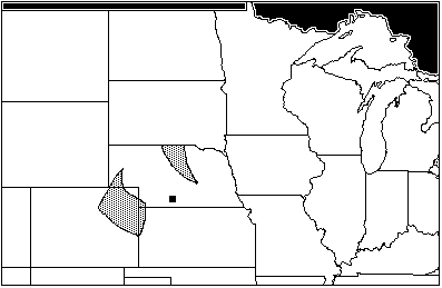 The Hulme Site, in Hall County, Nebraska, dates to ad 1175 1225. (Bozell 1991:229- 253). Its assemblage contains: Blarina carolinensis, the southern short-tailed shrew; Sylvilagus floridanus; Citellus franklinii; C. tridecemlineatus; Cynomys ludovicianus; Geomys bursarius; and Microtus ochrogaster. The site lies in nearly the center of the area of maximum sympatry, which runs from southern South Dakota through Nebraska and into Kansas (Figure 6). This assemblage represents a variety of habitats, with Plains animals (Citellus tridecemlineatus, Cynomys ludovicianus); mixed-habitat animals (Citellus franklinii); and woodland animals (Blarina carolinensis, Sylvilagus floridanus), although these last three are unparticular animals.