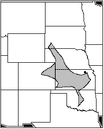 The next oldest site of the Woodland affiliation is the Wallace site, in Gosper County, Nebraska, near the Kansas border, and dates from AD 425 to 650. (Bozell & Koch n.d.) The Wallace assemblage includes: Scalopus aquaticus, the eastern mole; Cynomys ludovicianus, the blacktail prairie dog; Sciurius niger; Perognathus hispidus, the hispid pocket mouse; Onychomys leucogaster, the northern grasshopper mouse; Microtus pennsylvanicus, the meadow vole; and Geomys bursarius. There are two small areas of maximum sympatry for the Wallace site, one a sliver of north-central Nebraska running south from the Niobrara river, the other a small wedge in extreme northeastern Colorado (Figure 2). This unusual sympatry is caused by the distribution of Microtus pennsylvanicus, a vole with an affinity for open habitats near water. Today, M. pennsylvanicus is absent from much of Nebraska, including Gosper county. The secondary area of sympatry without M. pennsylvanicus runs along the Niobrara river in the north, south through Nebraska, Kansas and Oklahoma into central Texas (Figure 3). Sciurius niger is the only species of the Wallace assemblage with affinities for woodland habitats; the rest show a definite preference for open, sparsely-vegetated habitat.